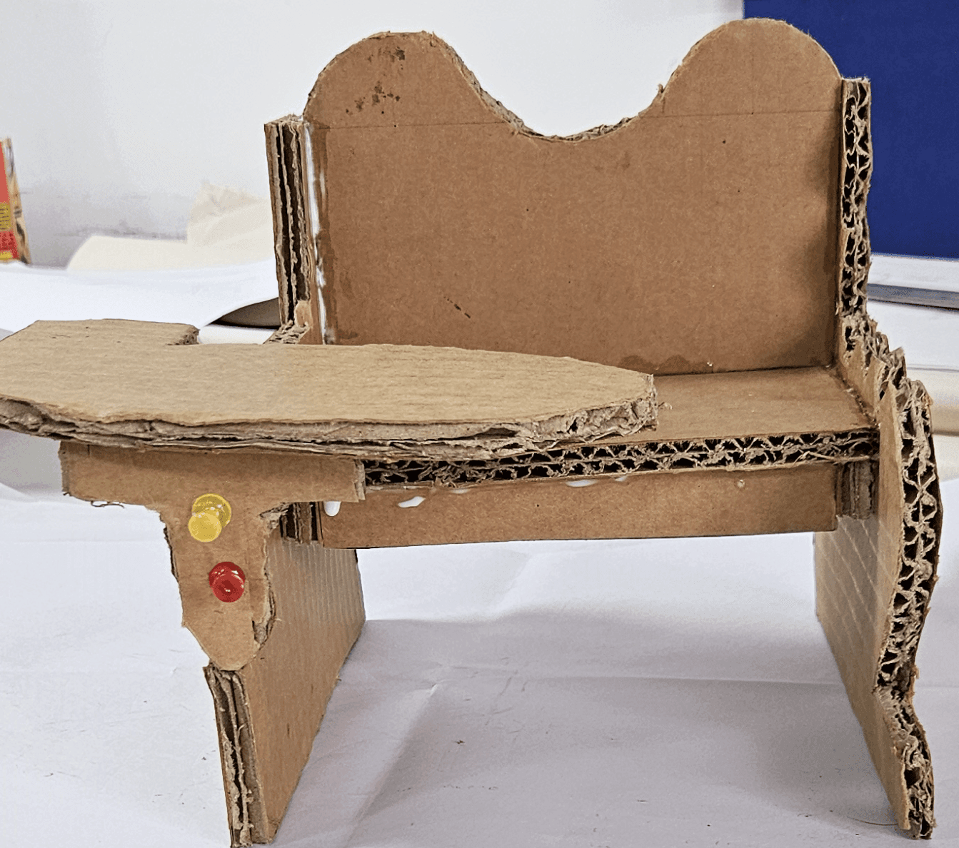 This kids’ chair features a unique combination of playful design with visually engaging form and functionality, offering comfortable seating along with a detachable table. The design is inspired by the bold geometric aesthetics of Ettore Sottsass, an Italian Architect and furniture designer, renowned for his postmodern designs that blend playful shapes and forms with vibrant colours.