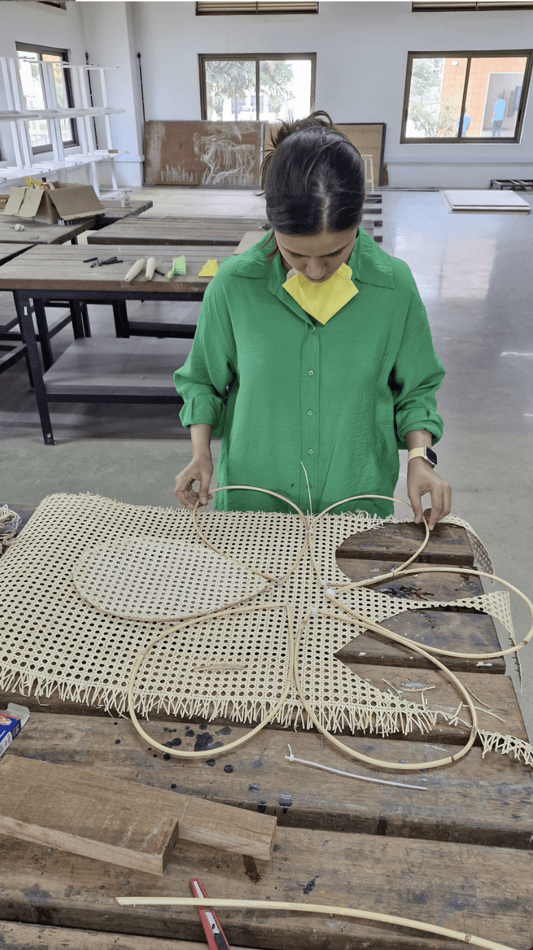 This studio focused on understanding material behaviour through tactile, workshop-based learning. Working with bamboo, metal, and concrete, I designed and built a functional lamp that explored the interplay between structure and expression. Beginning with uncertainty and unfamiliar tools, I gradually gained confidence as I navigated the constraints and characteristics of each material. Through iteration, I fused the organic flexibility of bamboo with the strength of metal and the solidity of concrete. The form—a flower-inspired lamp—balanced natural curves with geometric rigidity, while the woven rattan softly filtered light, adding a sensory dimension to the final object. Each choice was informed by both material logic and emotional resonance. The process taught me to balance precision with improvisation, to think through my hands, and to let the workshop become a space of experimentation. This project was not just about making a product—it was about learning how materials shape both form and thought.