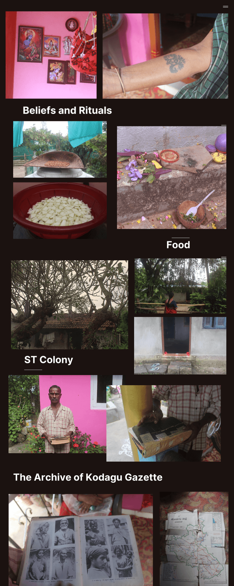 The Matter of the Land explores the displacement of tribal communities in Kodagu and the transformations in their relationships to land, labor, and ritual life. Through fieldwork with Yerava, Jenu Kuruba, Soliga, and Kudiyas, the study examines transitions from forest-dwelling to estate labor and finally to state rehabilitation settlements. Anchored in Tim Ingold’s “dwelling perspective,” it contrasts lived, hopeful relations to land with imposed, objectifying systems of control. The project traces how shifts in housing rights, food systems, livelihoods, and beliefs are interlinked, reflecting both resilience and loss in the everyday lives of Adivasi communities in changing socioecological landscapes.